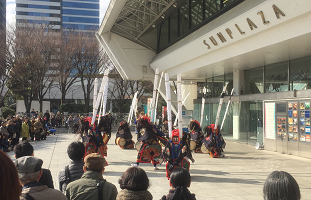 (右の写真は、説明会直前まで、中野サンプラザの入り口付近でパフォーマンスしていた獅子舞?の写真です)